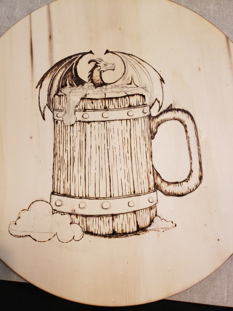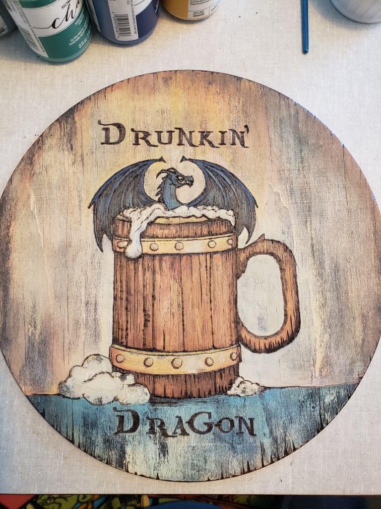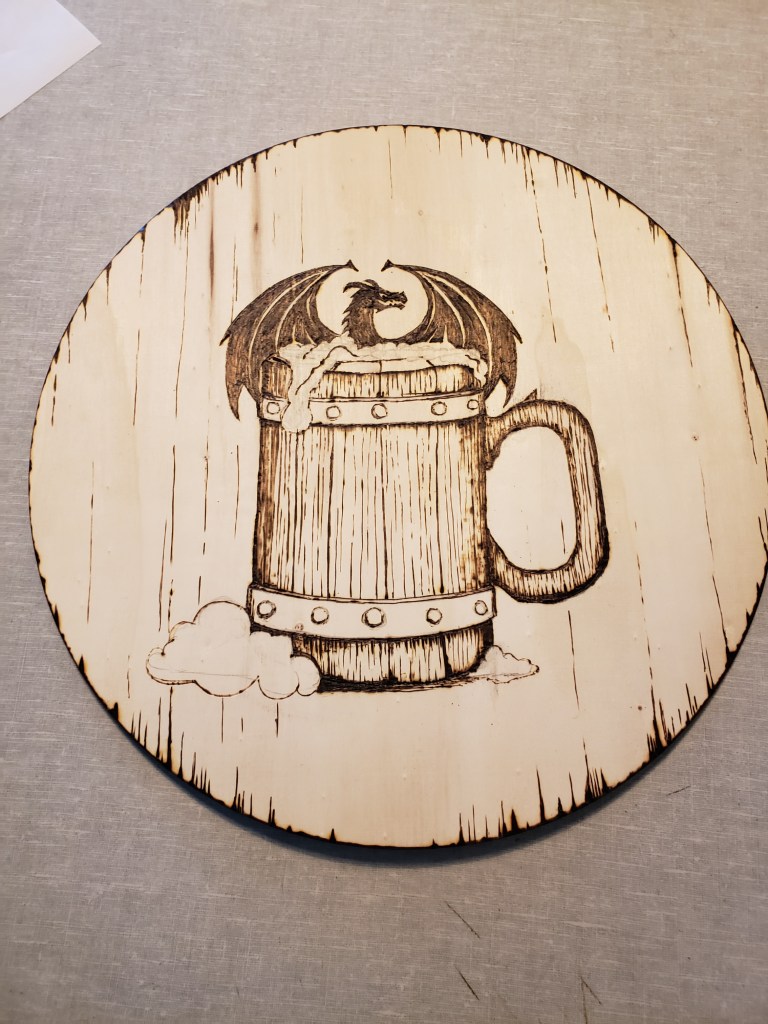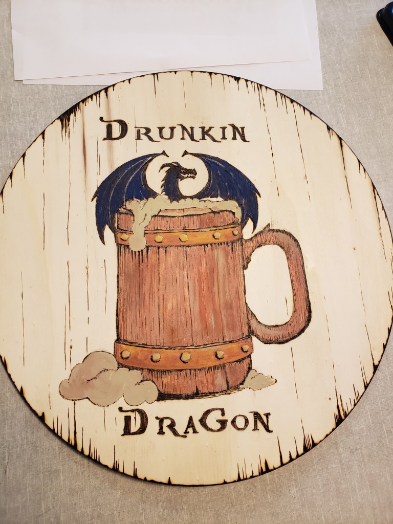 I’m fairly pleased with the results, but it may get some wood burning next time I take that tool out. I’m going to sit with it for a bit and see what I think. Hope you agree that it’s looking more fitting for a nerd tavern sign.