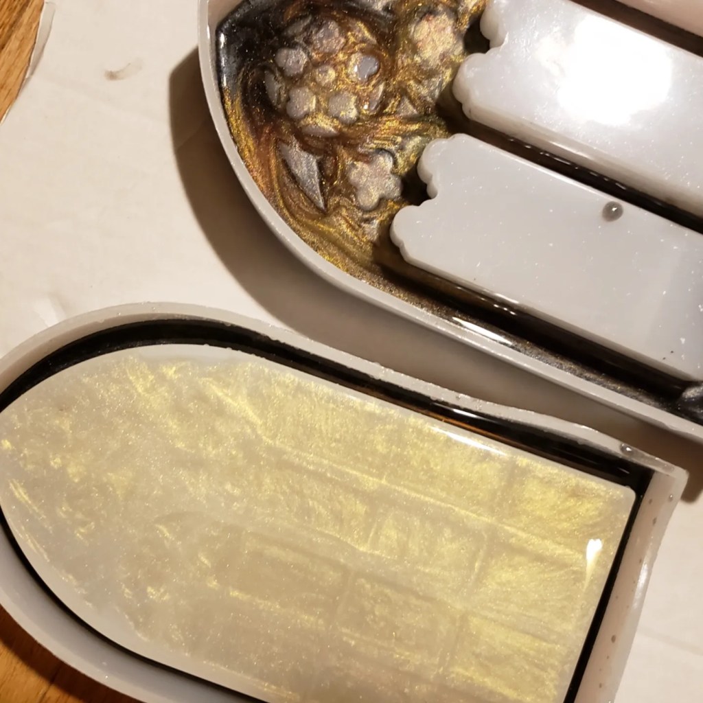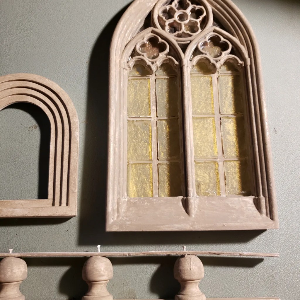 Clearly the castle was going to need some grandeur so I found tray molds online and adapted them to work for my purposes, cutting the flat section from one window into panes for the open window and only partially filling the molds to get the depth I was looking for.